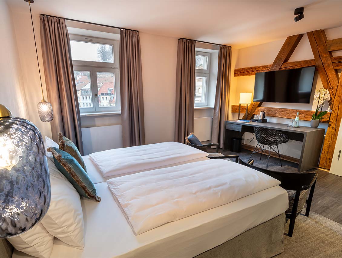 Mit Blick zur historischen Plassenburg und umgeben vom mittelalterlichen Charme des Kulmbacher Marktplatzes.